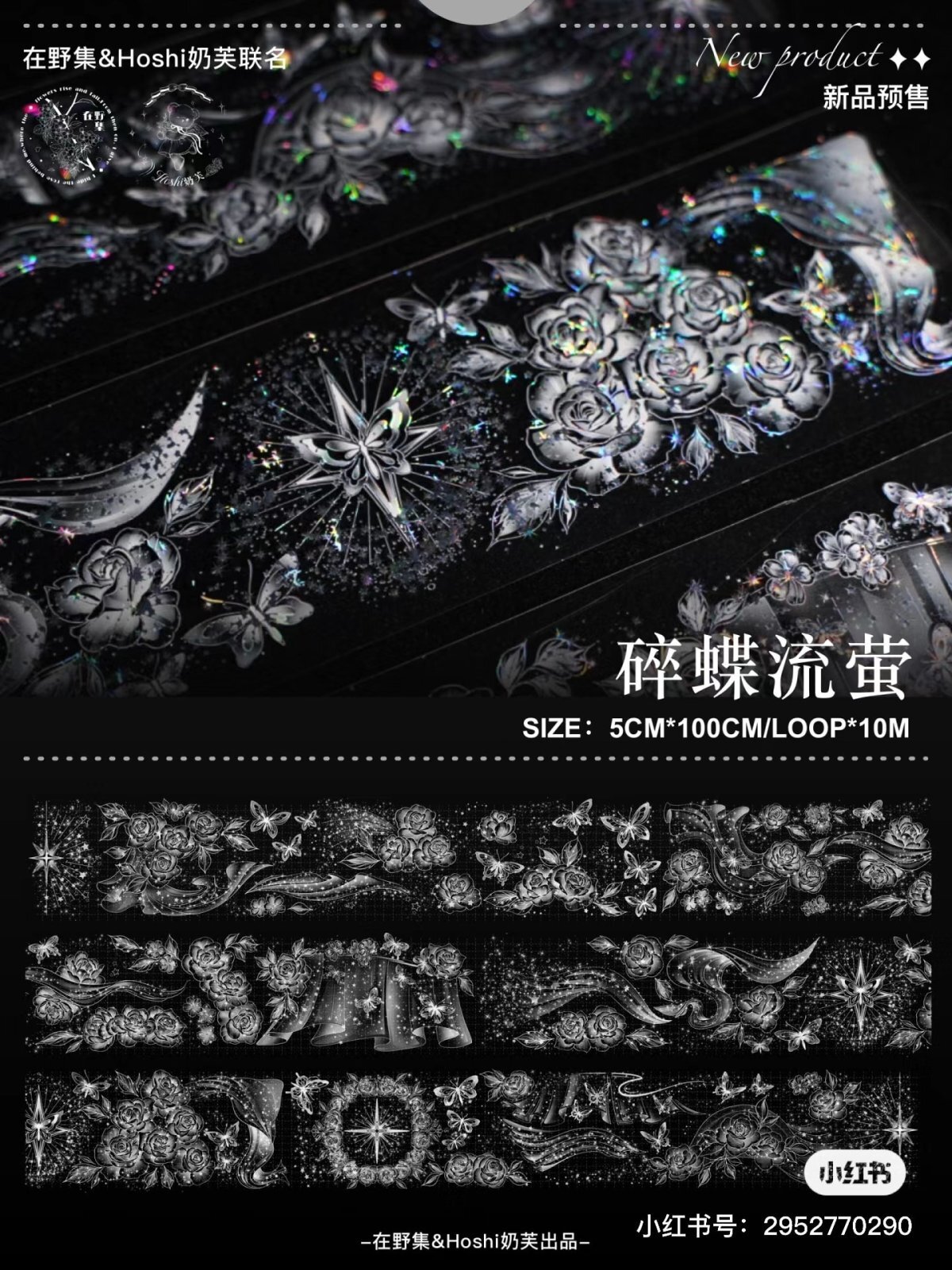【hoshi&在野集】碎蝶流萤-PET貝殻銀 [R3360-58-1]