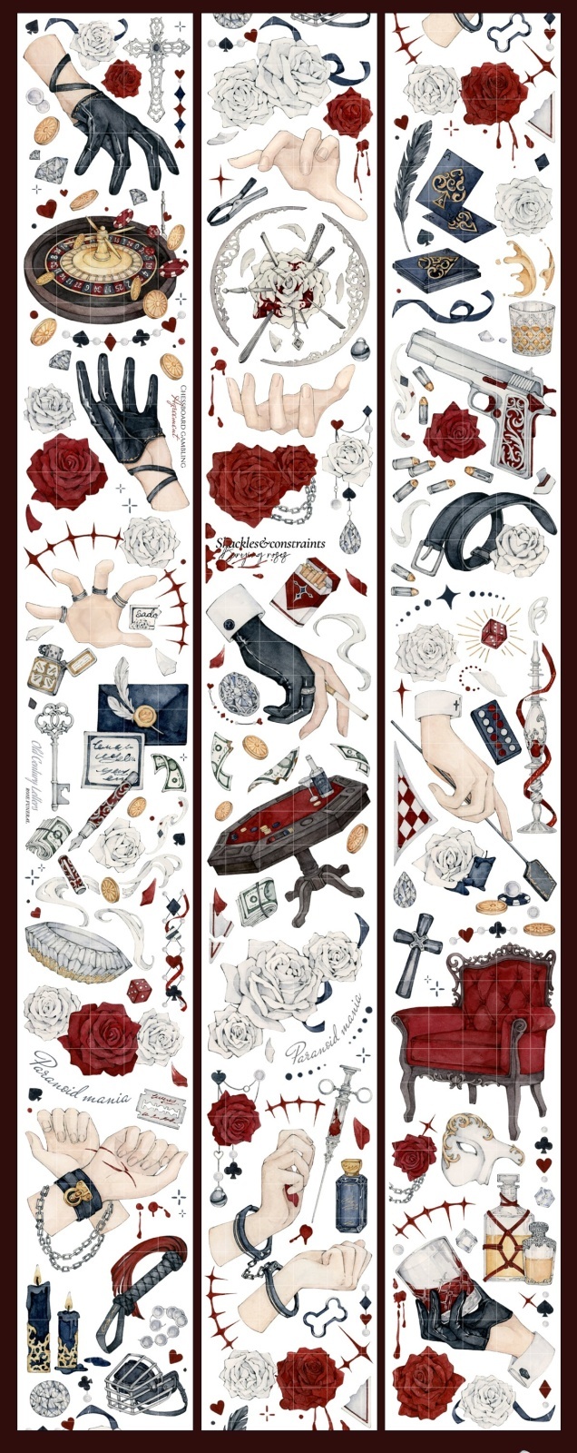 特種インク、白墨、ホログラム、虹光など、約1mmの印刷ズレが見られる場合がございますが、各メーカーさんでも記載がございますため、仕様とさせていただいております。