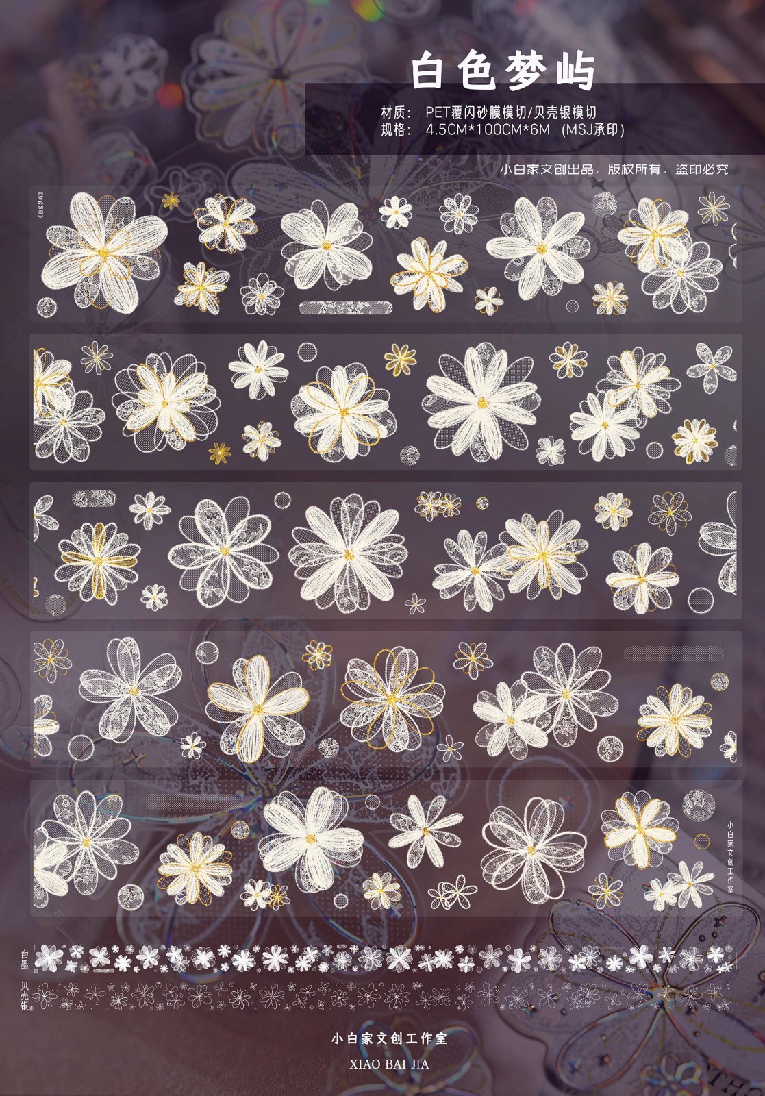【小白家】白色夢嶼-PET貝殻銀(ダイカット)